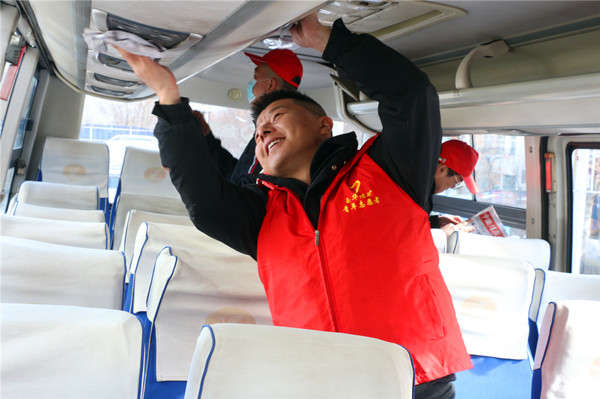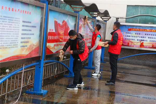 早9點(diǎn),該礦信息樓前的電腦修理點(diǎn)格外熱鬧,電腦義務(wù)維修桌前,被稱為電腦“高手”的青年志愿者忙碌的來回穿梭。通勤車上、職工洗浴中心、礦區(qū)主干道兩旁,眾多“小紅帽”提著水桶拿著毛巾,清理衛(wèi)生死角,擦亮了燈箱以及橋梁護(hù)欄,讓礦井環(huán)境更加美化靚化。