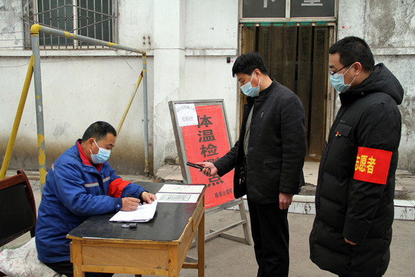 “疫情不退,我們就不退!越是聚集地方越是危險,還越要讓職工滿意放心”。黨員志愿者楊濤測溫時語氣堅定。