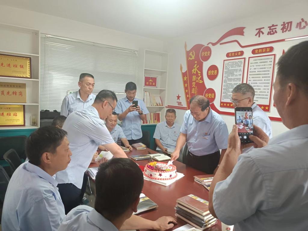 7月15日,欣榮公司黨組織負(fù)責(zé)人來(lái)到市場(chǎng)運(yùn)營(yíng)部黨建聯(lián)系點(diǎn),和全體黨員共同度過(guò)了一場(chǎng)不同尋常的集體“主題黨日活動(dòng)”,慶祝黨員“政治生日”。