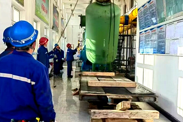 機電技術(shù)人員到達(dá)現(xiàn)場全面排查,迅速確定故障原因,充分討論診斷制定更換檢修方案。機電車間組建以“黨員突擊隊”為主要力量的檢修小組火速投入戰(zhàn)斗,全力保障設(shè)備更換維修。泵體重達(dá)16噸,需要拆卸的輔助設(shè)備多,機房空間狹小、室內(nèi)運輸不具備條件。機電車間完善安全技術(shù)措施,明確施工工序,檢修小組開展專項風(fēng)險辨識,黨員突擊隊積極想辦法、出點子。鋪設(shè)運輸枕木道線,使用平板車將新泵體運輸?shù)绞┕c,工序銜接緊密、操作精準(zhǔn)熟練誤,隨著設(shè)備的拆卸、起吊和安裝,大家同心協(xié)力,克服困難,一個個難題迎刃而解。