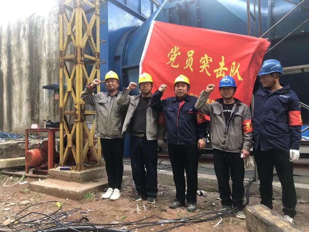 在變頻改造施工現(xiàn)場,戴著共產(chǎn)黨員紅袖章的先鋒隊員,在悶熱潮濕的天氣下,將粗重的電纜一根一根地放進電纜支架上,設(shè)備搬運、接線、調(diào)試也在加緊進行,衣服上已被汗水浸透出現(xiàn)了明顯的白色鹽斑,但他們簡單地補充水分后又繼續(xù)投入到工作中去,為的就是讓新主扇早日投入運行,用實際行動踐行自己的入黨誓言。