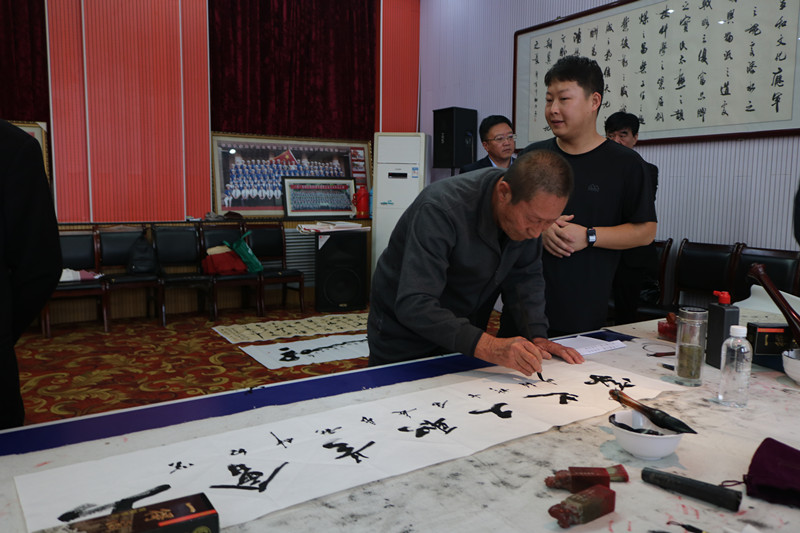 活動在銅煤職工管樂團(tuán)演奏的《唱支山歌給黨聽》中拉開帷幕,慷慨激昂的樂曲贏得了在場書畫家們的陣陣掌聲。隨后,上品名家陜甘邊革命老區(qū)書畫交流組委會和上品翰墨文化藝術(shù)中心的領(lǐng)導(dǎo)分別向川口社區(qū)和物資供應(yīng)分公司贈送了名家書畫作品。書畫家們的揮毫潑墨、細(xì)染丹青將整場活動帶入了高潮,一幅幅蒼勁有力的書法作品、生動巧妙的水墨畫作逐漸呈現(xiàn)在大家眼前,會場洋溢著一派文墨氛圍。短短2個多小時,書畫家們即興創(chuàng)作了30余幅書畫作品,這些作品主題鮮明、內(nèi)容豐富、題材多樣,立意深遠(yuǎn),用特有的藝術(shù)形式和視角深情表達(dá)對黨對祖國的無限熱愛和對美好生活的深情贊美,讓廣大干部群眾在欣賞中得到啟示,在愉悅中受到教育?;顒咏Y(jié)束后,書畫家們將一幅幅飄散著墨香、主題鮮明、寓意深遠(yuǎn)的書畫作品贈送給該分公司的干部職工。
