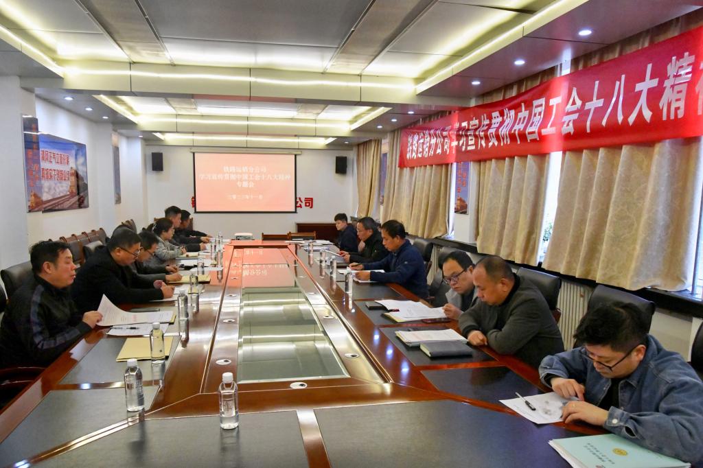 會(huì)上,首先傳達(dá)了上級(jí)工會(huì)關(guān)于組織開展好學(xué)習(xí)宣傳貫徹中國(guó)工會(huì)十八大精神專題會(huì)的重要指示精神,通過全體與會(huì)人員輪流領(lǐng)學(xué)、互動(dòng)交流的方式,深入學(xué)習(xí)了《習(xí)近平總書記同中華全國(guó)總工會(huì)新一屆領(lǐng)導(dǎo)班子成員集體談話和中國(guó)工會(huì)十八大精神傳達(dá)提綱》《中華全國(guó)總工會(huì)關(guān)于認(rèn)真學(xué)習(xí)宣傳貫徹習(xí)近平總書記重要講話精神努力完成中國(guó)工會(huì)十八大確定的目標(biāo)任務(wù)的通知》精神,并以文件形式下發(fā)了《鐵路運(yùn)銷分公司工會(huì)關(guān)于認(rèn)真學(xué)習(xí)宣傳貫徹中國(guó)工會(huì)第十八次全國(guó)代表大會(huì)精神的通知》。