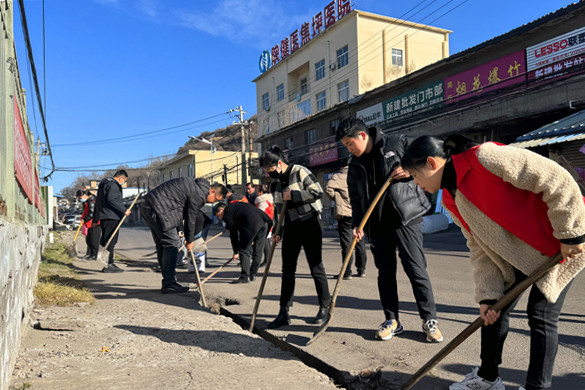 活動(dòng)中,黨員干部不怕冷、不怕臟,擼起袖子手持鐵锨、掃帚等工具,沿著街道對(duì)路面、溝渠等進(jìn)行清掃。大家分工明確,有人拔除雜草,有人在蓋板上疏通排水溝,有人抱起雜物碼放整齊。一上午的清理,街道環(huán)境面貌煥然一新。