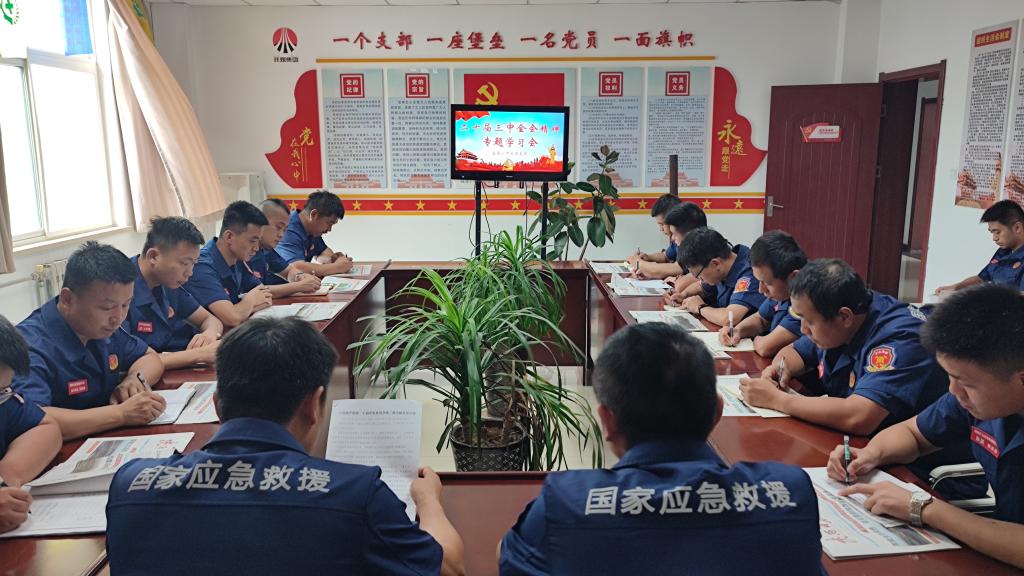 緊盯“中心任務(wù)”,堅持結(jié)合崗位實踐學(xué)。大隊科學(xué)把握全會精神的內(nèi)涵實質(zhì),緊密結(jié)合隊伍當前工作任務(wù),堅持把學(xué)習(xí)全會精神與隊伍建設(shè)發(fā)展、應(yīng)急救援等實際工作緊密結(jié)合,真正把全會精神貫徹落實到自身崗位實踐中,轉(zhuǎn)化為戰(zhàn)備訓(xùn)練的強勁動力。面對當前嚴峻的防汛形勢,大隊多次安排部署各項防汛措施,全體指戰(zhàn)員24小時值班待命,全面開展汛期安全隱患排查,及時維護和加強各類救援裝備和防汛物資,切實為防汛救災(zāi)做好充分準備和保障。