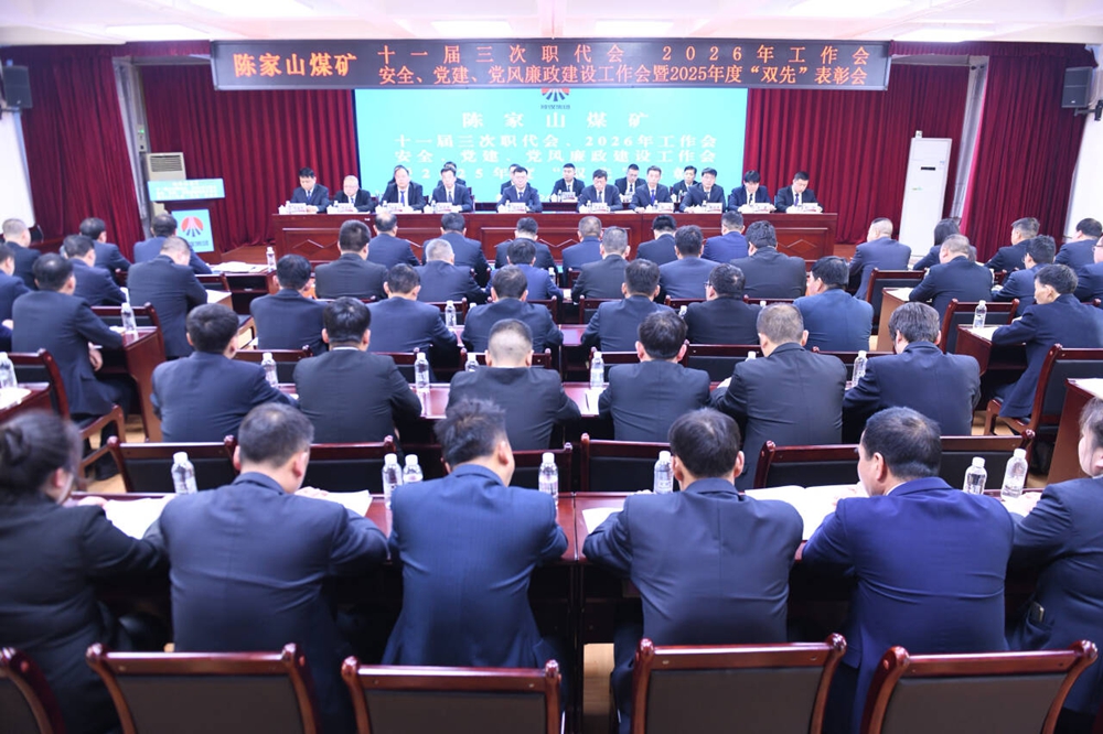 2月12日,陳家山礦召開(kāi)十一屆三次職代會(huì)、2026年工作會(huì)、安全、黨建、黨風(fēng)廉政建設(shè)工作會(huì)暨2025年度“雙先”表彰會(huì),動(dòng)員廣大干部職工統(tǒng)一思想,明確目標(biāo),主動(dòng)作為,砥礪奮進(jìn)奮力開(kāi)創(chuàng)礦井安全平穩(wěn)發(fā)展新局面。來(lái)自全礦各條戰(zhàn)線的職工代表、列席代表和受表彰的先進(jìn)集體代表100余人參加了會(huì)議。