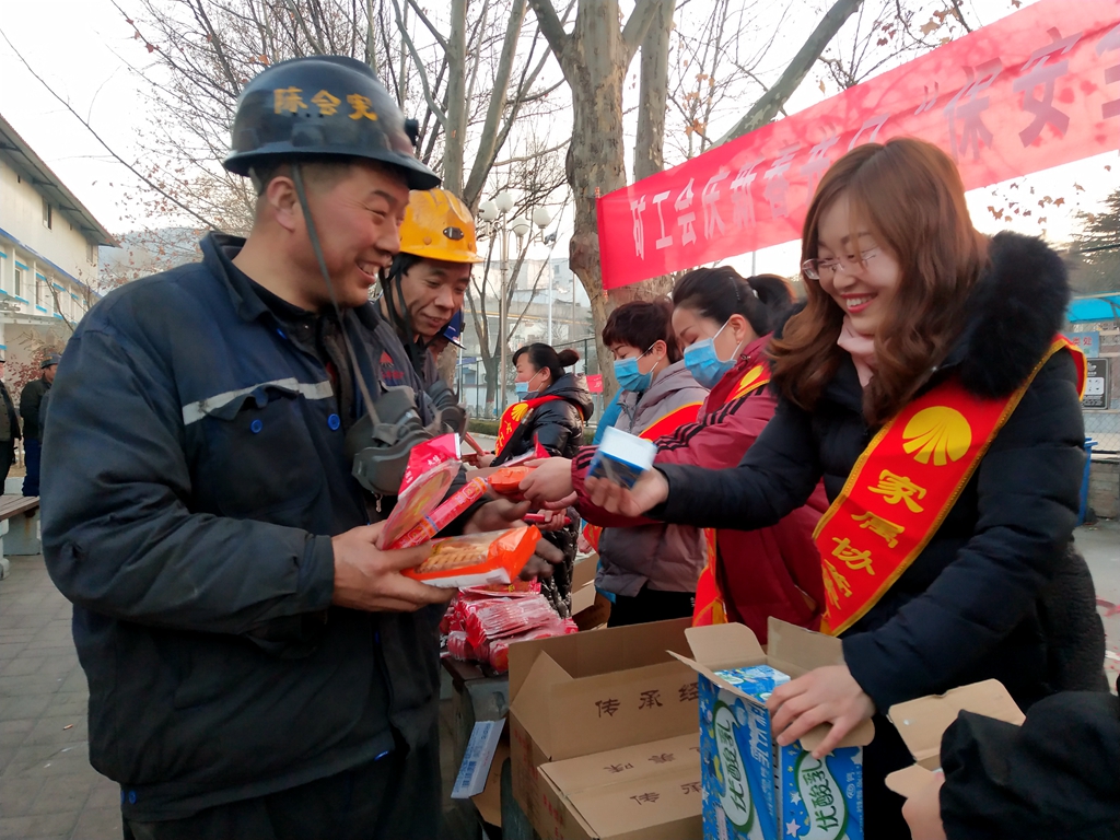 一大早,該礦工會(huì)就將提前準(zhǔn)備好的面包、麻花、火腿、酸奶、鞋墊等節(jié)日禮品送到每位升入井職工手中,真正把企業(yè)的關(guān)懷和溫暖送到職工的心坎上,同時(shí)祝福礦工兄弟們新春快樂,幸福安康,提醒大家為了企業(yè)的安全生產(chǎn)和家庭的幸福美滿,一定要牢記安全,杜絕“三違”……一聲聲貼心的祝福,一句句深情的叮囑,讓職工們深受感動(dòng),紛紛表示表示一定聽從指揮,按章作業(yè),認(rèn)真完成好本職工作,為礦井安全發(fā)展貢獻(xiàn)自己的一份力量?;顒?dòng)現(xiàn)場(chǎng),不時(shí)傳來(lái)一陣陣歡快的笑聲和新年的問候,處處洋溢著濃濃的節(jié)日氣息。