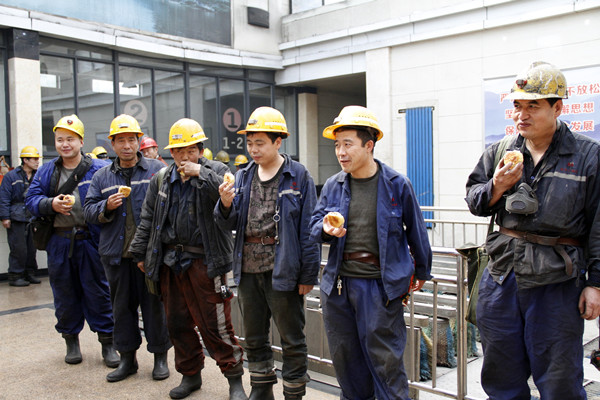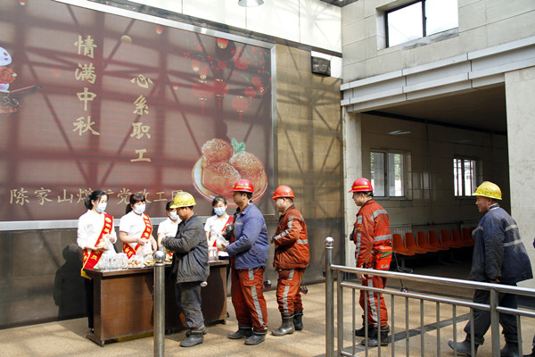 “師傅,辛苦了,給您吃塊月餅,祝您和您的家人中秋快樂!下井,一定要注意安全?!痹诰?,該礦女工及家屬協(xié)管員們把帶有甜蜜與溫暖的月餅、雞蛋和真硒水熱情地遞到正準(zhǔn)備下井的礦工們手中,叮囑他們牢記安全、遵章作業(yè),用滿滿的情誼溫暖職工的心,旨在把企業(yè)的溫暖和關(guān)愛送到礦工兄弟們的心坎上。