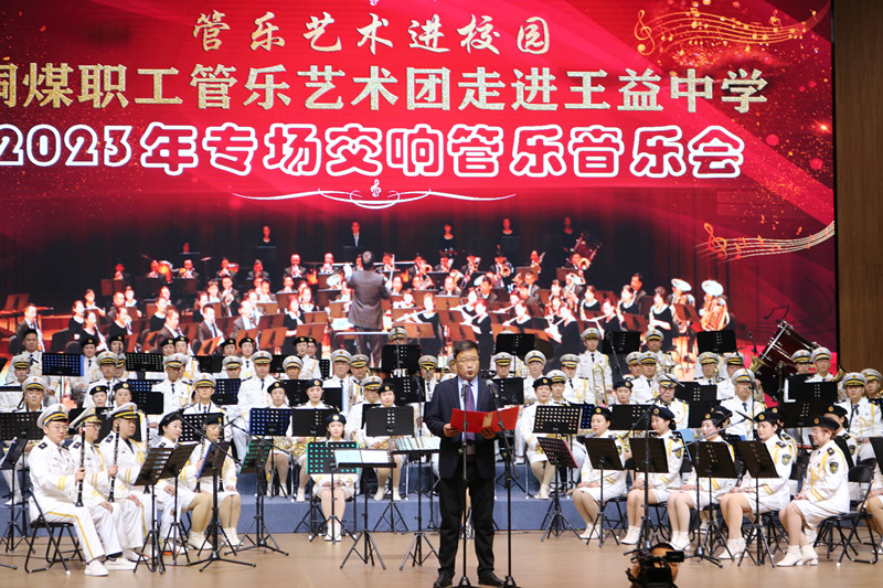 “管樂藝術(shù)進(jìn)校園”專場交響音樂會(huì)受王益中學(xué)邀請(qǐng),以校企聯(lián)誼的方式,開展高雅藝術(shù)“進(jìn)校園、進(jìn)基層、進(jìn)社區(qū)”活動(dòng),旨在進(jìn)一步傳播銅煤文化,講好銅煤故事。王益區(qū)教科文體局黨委委員、王益中學(xué)黨委書記孫鑫在觀看完演出后興奮地說道:“真沒想到銅川礦業(yè)公司還有如此優(yōu)秀的樂隊(duì),你們的演出太精彩了,令老師和學(xué)生們激動(dòng)不已,為你們點(diǎn)贊?!蓖瑫r(shí)他也表示,王益中學(xué)將以認(rèn)真學(xué)習(xí)借鑒銅川礦業(yè)公司推進(jìn)企業(yè)文化建設(shè)的經(jīng)驗(yàn)做法,并以開展本次“管樂文化進(jìn)校園”活動(dòng)為契機(jī),通過加強(qiáng)交流合作,進(jìn)一步圍繞促進(jìn)學(xué)生德智體美勞全面發(fā)展,通過立德樹人、精心育人不斷開創(chuàng)各項(xiàng)工作發(fā)展新局面。