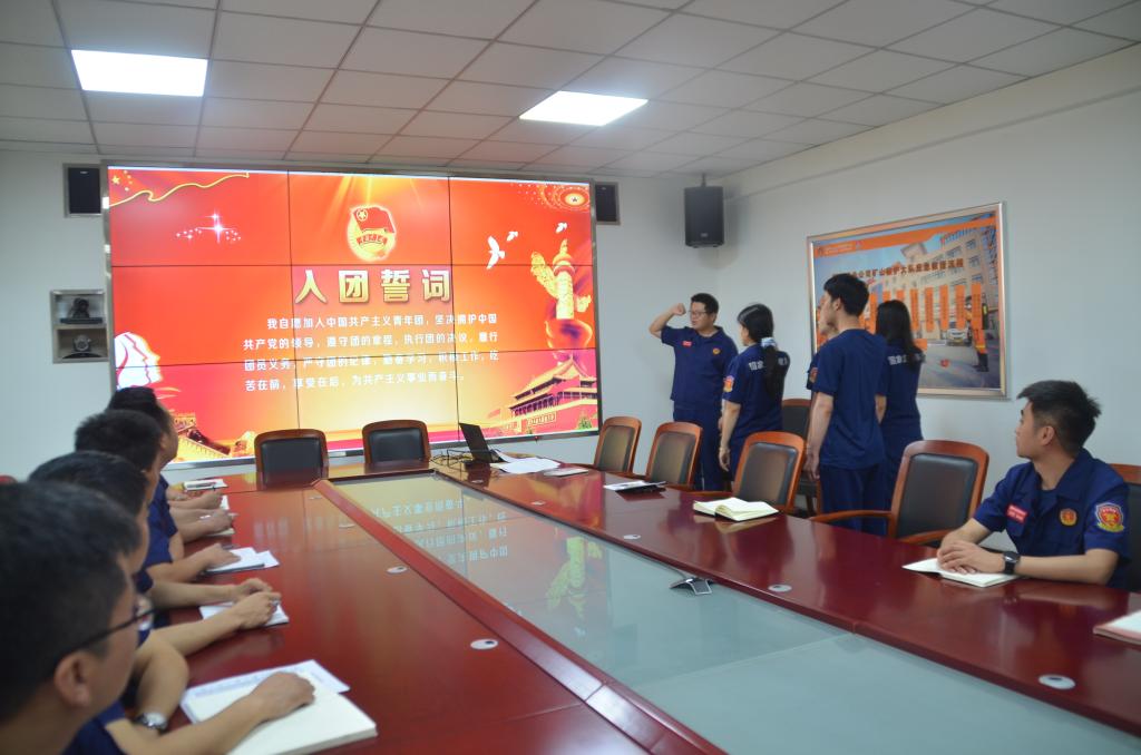 在“青春誓言”宣誓儀式上,全體團員高舉右拳,莊嚴(yán)宣誓:“我志愿加入中國共產(chǎn)主義青年團,堅決擁護中國共產(chǎn)黨的領(lǐng)導(dǎo)……為共產(chǎn)主義事業(yè)而奮斗!”鏗鏘有力的誓言,在會議室回蕩,彰顯了團員們對黨的忠誠和對礦山救護事業(yè)的熱愛。