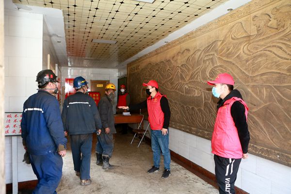 “師傅,您再往后面來一點(diǎn),說話時(shí)要保持1.5米以上距離;工作期間請(qǐng)將口罩佩戴好。”供應(yīng)科團(tuán)支部書記張君和青年團(tuán)員來到井口,溫馨提示廣大職工積極做好個(gè)人防疫。