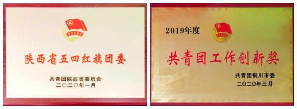 公司團委:“陜西省五四紅旗團委” “銅川市共青團工作創(chuàng)新獎”