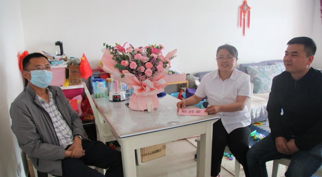 5.12國際護(hù)士節(jié)前夕,欣盛煤機(jī)公司工會及車間負(fù)責(zé)人一行受公司黨政委托,專程到職工孫戰(zhàn)家中,看望慰問他的妻子,援鄂抗疫醫(yī)護(hù)人員王亞麗,代表公司全體職工向夫妻二人致以崇高的敬意和誠摯的問候,并送上了慰問金和慰問品。