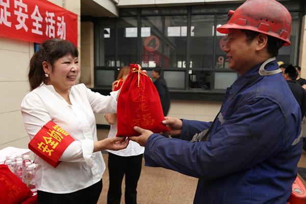 “師傅,您辛苦了,井下干活,注意安全!”女工家屬協(xié)管們一邊送慰問品,一邊囑安全,并不時提醒大家,工作期間一定要將安全牢記心頭、消除麻痹大意思想,遵章作業(yè)、安全生產(chǎn),活動現(xiàn)場,礦工兄弟們接過女工家屬協(xié)管手中的慰問品,臉上露出了幸福的微笑,深情款款的叮嚀,使活動現(xiàn)場倍感溫馨。