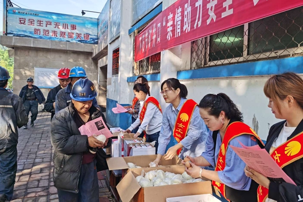 活動(dòng)期間,礦女工委組織部分女工小組長(zhǎng)和一些家屬,通過(guò)印制分發(fā)煤礦安全小常識(shí),生活必備安全知識(shí)等宣傳資料,為入井職工準(zhǔn)備了礦泉水、雞蛋、食品等慰問(wèn)品。同時(shí),女工協(xié)管員們還為上下井職工送上一句句溫馨的祝福語(yǔ),“工作中一定要按章作業(yè)、你們的妻兒在等你平安回家”“安全工作就是對(duì)家里最好的回報(bào)”“你安全的工作,我們?cè)诩也拍芊判摹薄宦暵曎N心問(wèn)候,一句句深情的叮囑,讓廣大職工感受到了家的溫暖和愛(ài)意,也在每個(gè)即將入井步入工作崗位的職工心中筑牢了安全第一道防線(xiàn)。