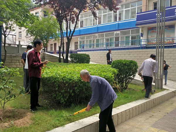 8日一大早,灑水車沿礦區(qū)公路進行灑水降塵。黨委中心組學(xué)習(xí)結(jié)束后,全礦黨員自帶拖把、掃帚、抹布、水桶在辦公樓樓道、走廊打掃室內(nèi)外衛(wèi)生;有的自費買來洗衣粉、洗潔凈擦玻璃;有的拿起掃帚打掃地面、有的拿著毛巾清理墻壁、擦拭宣傳櫥窗;有的拿起水桶,一桶一桶地來回打水;有的在花園里撿拾樹葉;有剪花修枝一技之長的黨員修剪花草樹木;有的推著草坪機割草;大家拉開距離,默默地干著各自的活,沒有語言、沒有吵鬧聲,大家忙碌的身影成為礦區(qū)一道亮麗的風(fēng)景線。