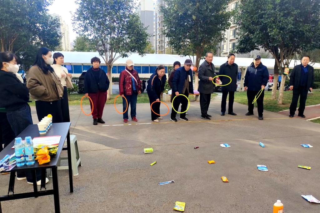 本次趣味運(yùn)動會設(shè)置了套圈圈、兵乓球過河等適合老人參與的競技項目?;顒蝇F(xiàn)場熱鬧非凡,笑聲、歡呼聲此起彼伏,參賽的老人們個個精神抖擻,手持套圈,躍躍欲試,全身貫注地參與其中臉上洋溢著幸福的笑容。