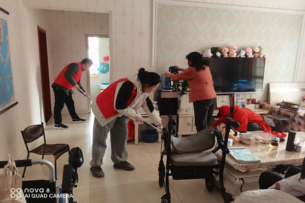 活動當(dāng)日,管理中心青年志愿者們早早集合,帶著清潔工具前往老人家中,大家分工明確,有條不紊地開始打掃。有的志愿者仔細(xì)擦拭家具、門窗,有的認(rèn)真清掃地面,還有的幫忙整理雜物。過程中,志愿者們還親切地與老人聊天,了解他們的生活狀況和需求,傾聽他們的故事,歡聲笑語回蕩在屋內(nèi),讓原本安靜的房間充滿溫馨。