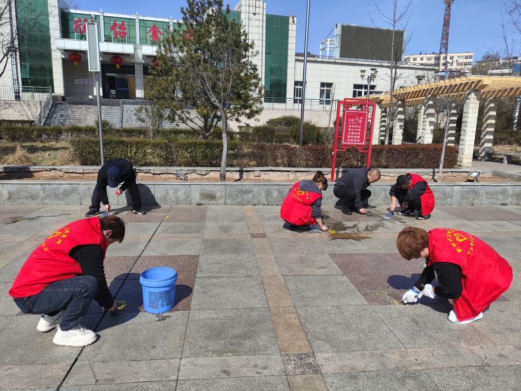 走在前列,打響環(huán)境整治“攻堅戰(zhàn)”。 該中心11名黨員身著紅色志愿服,自帶鏟刀、噴壺、涂料等工具,沿著礦區(qū)臨街主路、職工家屬樓一路直上,分工明確,分片包干,有人負(fù)責(zé)鏟除墻面頑固廣告,有人用清潔劑清洗地面污漬,還有人專門清理樓道堆積雜物?!斑@些‘牛皮癬’不僅影響美觀,還可能存在虛假信息,必須徹底清除?!眳⑴c活動的老黨員張師傅一邊擦拭單元門上的小廣告,一邊向圍觀職工家屬講解活動意義。“紅色服務(wù)”亮相礦區(qū),成為春日里一道亮麗風(fēng)景線。