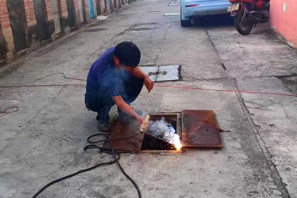 維修現(xiàn)場(chǎng),運(yùn)行部工作人員嚴(yán)格遵守安全操作規(guī)范,先對(duì)破損井蓋進(jìn)行全面檢查,確定破損位置和程度,隨后使用專業(yè)焊接工具對(duì)裂紋處進(jìn)行精準(zhǔn)焊接。焊接完成后,還對(duì)井蓋表面進(jìn)行打磨處理,確保其平整光滑,同時(shí)對(duì)井蓋與井座的契合度進(jìn)行調(diào)試,恢復(fù)正常使用功能。