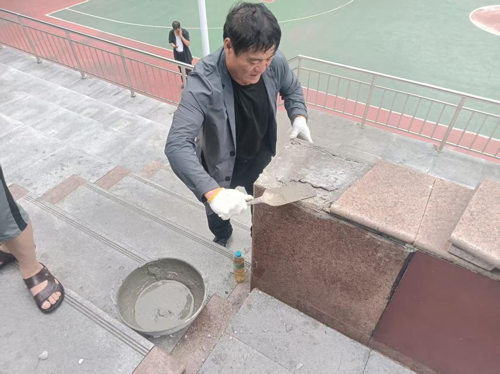 在他的帶動下,團(tuán)隊(duì)成員干勁十足,原本計(jì)劃20天完成的樓梯維修工程,提前5天高質(zhì)量竣工,僅此一項(xiàng)就為中心節(jié)約資金數(shù)萬元。而曾經(jīng)破損松動的樓梯翻新后,職工群眾走在上面,心里也多了份踏實(shí)。
