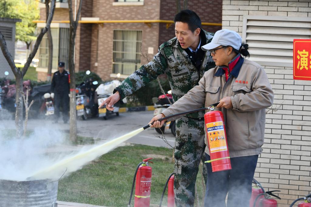 緊隨其后是義務(wù)消防隊(duì)員向住戶演示消防器材使用及滅火實(shí)操,工作人員在空曠地帶點(diǎn)燃裝有木柴的油桶,瞬間升騰的火焰模擬出初期火災(zāi)場景。義務(wù)消防隊(duì)員率先登場,演示滅火器“提、拔、握、壓”四步標(biāo)準(zhǔn)操作法:提起滅火器、拔掉保險(xiǎn)銷、握住軟管前端、壓下把手對(duì)準(zhǔn)火源根部噴射。隨后,在義務(wù)消防隊(duì)員“一對(duì)一”指導(dǎo)下親身體驗(yàn)滅火過程,現(xiàn)場觀摩住戶手持滅火器,按照要領(lǐng)果斷噴灑,火焰瞬間被撲滅。這一環(huán)節(jié)不僅讓大家掌握了實(shí)用技能,更通過沉浸式體驗(yàn)消除了對(duì)火災(zāi)的恐懼心理。