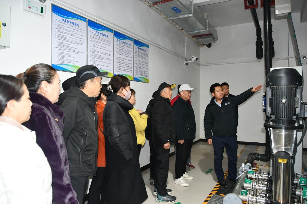 該中心工作人員帶領(lǐng)住戶代表前往地下室水泵房、熱力交換站等設(shè)備間,現(xiàn)場講解水泵的工作流程、日常巡檢要點(diǎn)和應(yīng)急處置流程,讓大家直觀了解園區(qū)供水系統(tǒng)的運(yùn)行細(xì)節(jié),并圍繞供暖設(shè)備運(yùn)行原理、供暖參數(shù)以及冬季供暖保障措施展開細(xì)致講解,針對(duì)住戶關(guān)心的供暖溫度、能耗等問題逐一回應(yīng)。