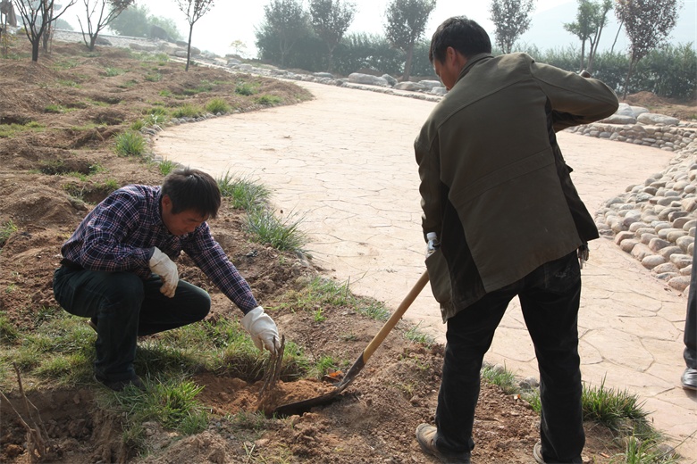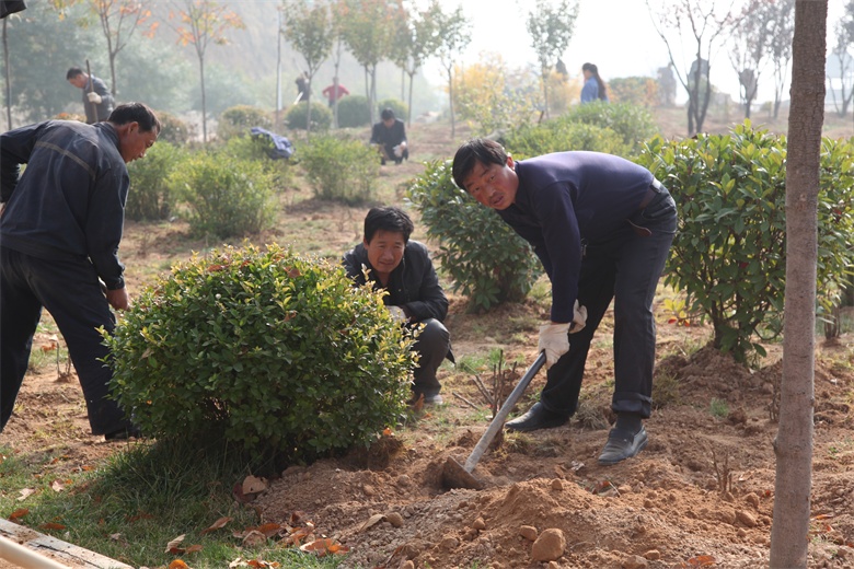 為保證栽種成活率,該礦將全礦職工分為十個(gè)小組,每組30—40人不等,在礦區(qū)和諧園、坑木廠舊址、道頭以及礦區(qū)道路兩側(cè)分工作業(yè),其中八個(gè)小組負(fù)責(zé)挖坑,另外兩個(gè)小組負(fù)責(zé)栽種、澆水,流程協(xié)作,各負(fù)其責(zé)。