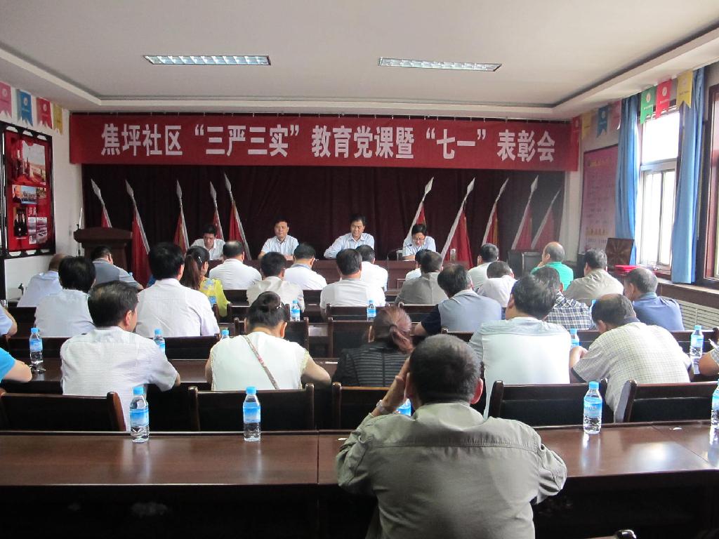 6月26日上午,焦坪社區(qū)召開“三嚴(yán)三實”教育黨課暨“七一”表彰會,該社區(qū)副科級以上干部、全體黨員及機關(guān)工作人員共40余人參加了會議。會議由社區(qū)副主任郭全斌主持。