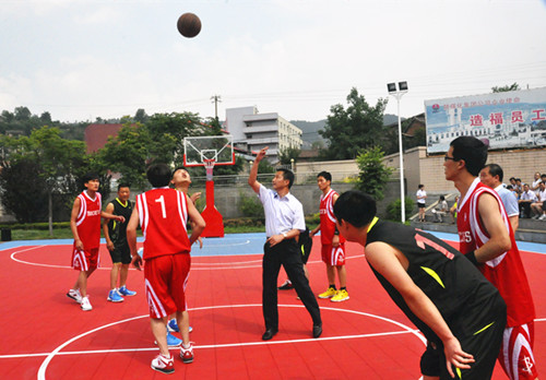 礦黨委書(shū)記田戰(zhàn)強(qiáng)宣布籃球運(yùn)動(dòng)會(huì)正式開(kāi)幕,現(xiàn)場(chǎng)立時(shí)掌聲雷動(dòng),群情雀躍。