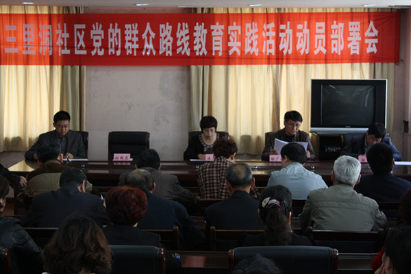 三里洞社區(qū)總支書記徐廣陽根據(jù)社區(qū)實(shí)際情況作了動(dòng)員講話。他強(qiáng)調(diào)了開展黨的群眾路線教育實(shí)踐活動(dòng)的必要性和重要性,以及活動(dòng)的主要內(nèi)容和任務(wù)。他要求,社區(qū)黨員干部應(yīng)迅速統(tǒng)一思想,以黨的十八大和十八屆三中全會(huì)精神為指導(dǎo),牢牢把握“照鏡子、正衣冠、洗洗澡、治治病”的總要求,按照實(shí)業(yè)公司要求,規(guī)定動(dòng)作不折不扣,切實(shí)查找好社區(qū)黨員干部中存在的“四風(fēng)”問題,為解決實(shí)際問題打好基礎(chǔ)。同時(shí),充分結(jié)合社區(qū)實(shí)際,緊緊圍繞存在的突出問題,將自選動(dòng)作做精彩,扎扎實(shí)實(shí)完成教育實(shí)踐活動(dòng)各項(xiàng)任務(wù)。