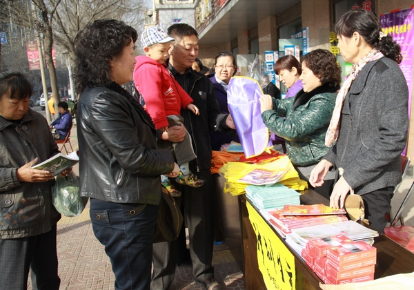 在該公司機關(guān)大門外的街道上,該公司計生辦工作人員向過往群眾熱情耐心的宣傳《陜西省計劃生育條例》、《陜西省流動人口計劃生育管理辦法》、《關(guān)于實行打擊“兩非“舉報獎勵辦法的公告》,共為500多名群眾解答優(yōu)生優(yōu)育和避孕節(jié)育中的有關(guān)計生知識以及婦女病的防治措施;發(fā)放計劃生育雜志50余份、宣傳單100余份、計生節(jié)育藥具100余盒、印有計生宣傳手提袋和圍裙200多個;為符合生育政策計劃懷孕的夫婦和已婚育齡婦女發(fā)放免費服務(wù)卡200余張。該公司計生辦走上街頭學(xué)雷鋒宣傳計劃生育政策,服務(wù)和方便了已婚育齡婦女及群眾,受到了廣大群眾的贊揚。