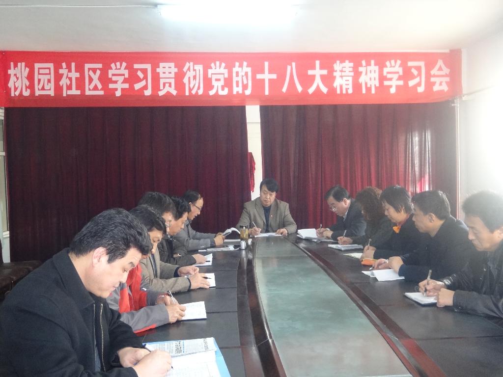 為深入學(xué)習(xí)貫徹落實(shí)黨的十八大精神,桃園社區(qū)利用中心組學(xué)習(xí)、召開機(jī)關(guān)全體員工大會(huì)、周三政治理論學(xué)習(xí)和班組長(zhǎng)會(huì)等形式深入學(xué)習(xí)黨的十八大精神。