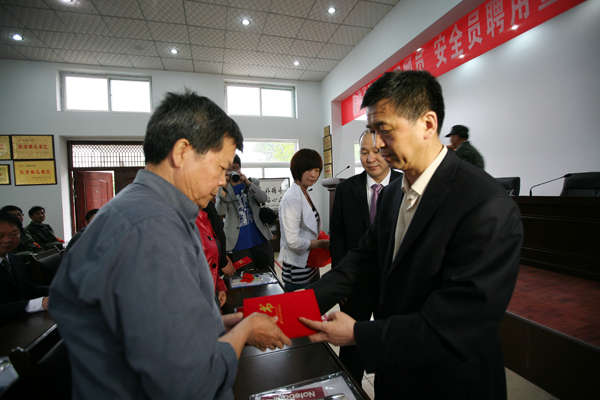 授旗儀式上,王家河社區(qū)管理中心主任張學(xué)海親自為搶險(xiǎn)隊(duì)授旗。搶險(xiǎn)隊(duì)政委接過(guò)鮮紅的隊(duì)旗并做了表態(tài)發(fā)言。同時(shí),為一號(hào)井、礦部、斜井三個(gè)地區(qū)的李金峰等10名同志頒發(fā)了“安全工作義務(wù)管理員”聘書(shū)和鮮紅的治安巡邏袖章;為社區(qū)工作人員孫恒奇等5名工作人員頒發(fā)了“安全員”聘書(shū)。并制定了《安全員、群安員崗位責(zé)任制度》、《安全員、群安員工作職責(zé)》。通過(guò)此舉措,調(diào)動(dòng)更多的轄區(qū)職工群眾積極參與到群防群治工作,不斷增強(qiáng)轄區(qū)職工群眾的安全意識(shí),營(yíng)造良好的社會(huì)治安秩序。