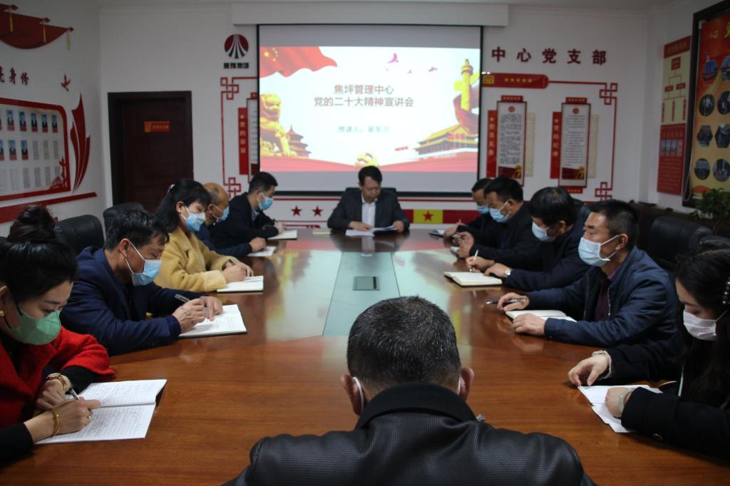 連日來,焦坪管理中心精心組織、周密部署,真學(xué)深悟,認(rèn)真學(xué)習(xí)宣傳貫徹黨的二十大精神,引導(dǎo)全體黨員干部職工自覺做黨的的堅定信仰者、忠誠擁護(hù)者、積極踐行者,切實在思想上、行動上擁護(hù)“兩個確立”,堅決做到“兩個維護(hù)”。