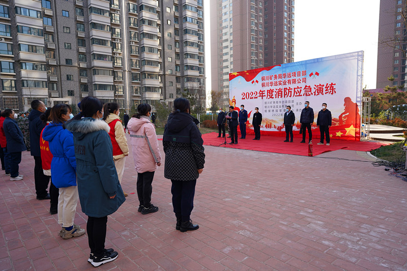 為進(jìn)一步增強(qiáng)項(xiàng)目部所屬各單位消防安全意識(shí),提高全員消防安全素質(zhì)和實(shí)際操作水平。12月14日,華遠(yuǎn)項(xiàng)目部在繡園小區(qū)開(kāi)展了2022年度消防應(yīng)急演練活動(dòng),礦業(yè)公司相關(guān)部門、新區(qū)消防大隊(duì)、項(xiàng)目部領(lǐng)導(dǎo)、所屬各單位負(fù)責(zé)人對(duì)整場(chǎng)演練進(jìn)行了觀摩。