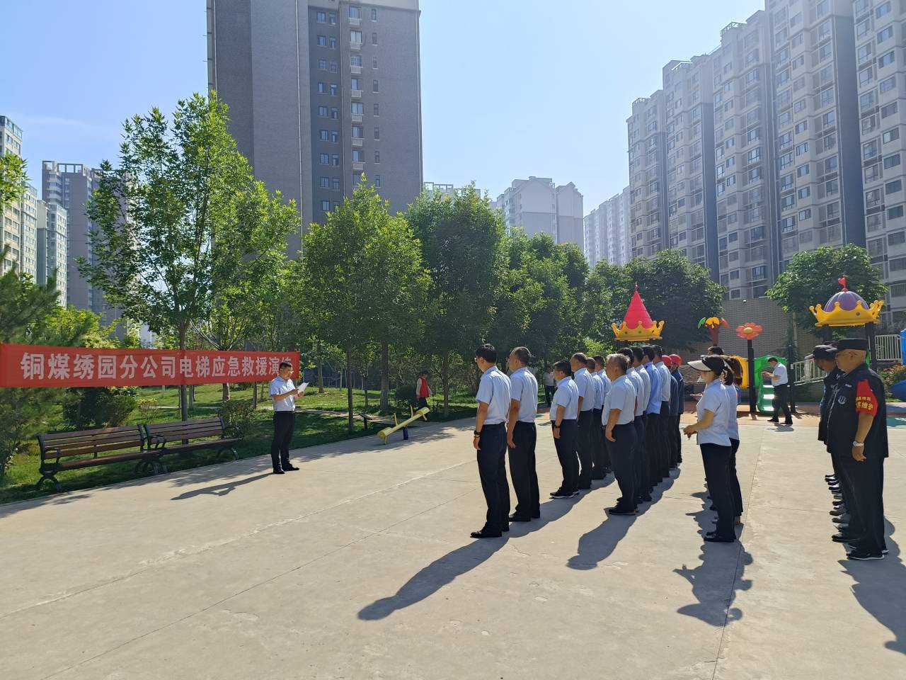 6月13日下午,銅煤繡園管理中心和電梯維保維修人員在銅煤二號聯(lián)合開展電梯困人應急實戰(zhàn)演練,切實加強電梯突發(fā)事故的應急救援工作,提高電梯突發(fā)事故應急處置救援水平,檢驗電梯應急預案中的不足項和整改項,提升各級安全管理人員及搶險隊員的現(xiàn)場解困能力,進一步強化人員安全意識,保障住戶乘梯安全。