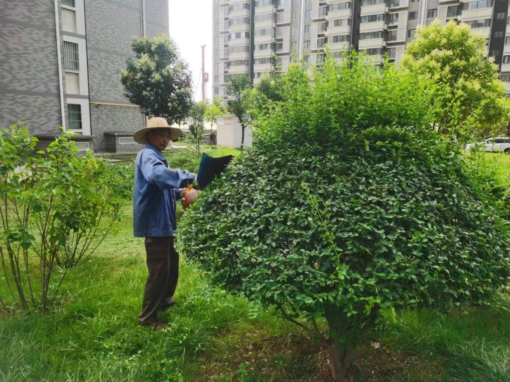 ——保潔綠化,小區(qū)內(nèi)的美容師,每一滴汗水只為整理出干凈的樓道,漂亮的植被