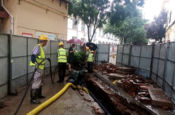 一場暴雨,突如來襲,給世錦園林在建工程工地溝道管網(wǎng)造成極大威脅,地下輸水管網(wǎng)因淤泥長期堆積,造成臨時開挖管溝積水。