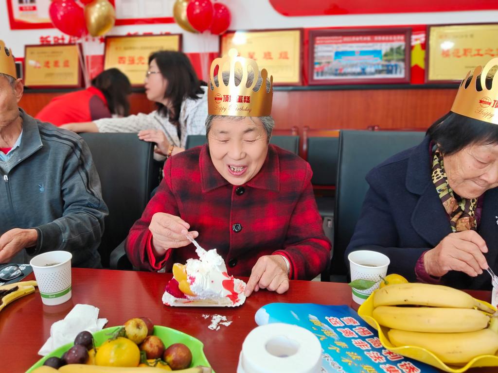 供應(yīng)中心黨支部書記首先為老人們送上節(jié)日的問候, 志愿者獻(xiàn)上生日蛋糕, 為老人們戴上生日帽,齊唱生日歌。老人們一邊吃蛋糕一邊拉家常,臉上的笑容透露出他們內(nèi)心的喜悅。 一份蛋糕、一份甜蜜、一份祝福 ,本次活動以集體生日會為載體,為他們的晚年生活增添了更多樂趣。該中心通過舉辦豐富多彩的為民服務(wù)活動,不斷提升小區(qū)住戶的獲得感、幸福感。