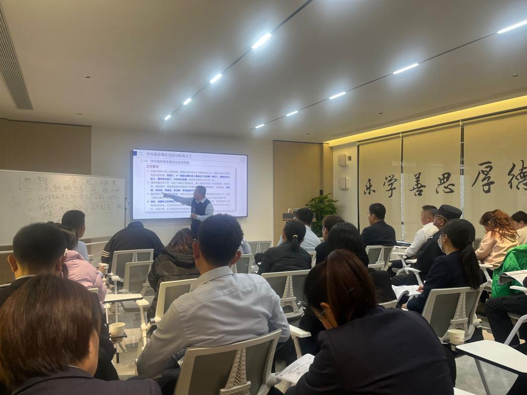 培訓會上,授課老師首先針對停車服務工作的必要性、職責分工、臨時車輛的疏導及解決辦法、停車收費系統(tǒng)注意事項等多方面進行了全面講解,通過經(jīng)典案例分析,對物業(yè)具體實踐中一些問題處置及預防措施進行了深入剖析,同時在課余時間與學員互動,解答實際操作中的疑惑和難點。