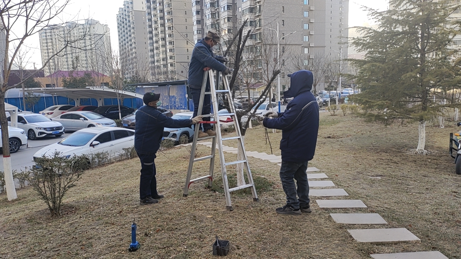 在銅煤家園,工作人員在給枯樹枝進(jìn)行修剪,提前做好樹木過(guò)冬準(zhǔn)備工作。