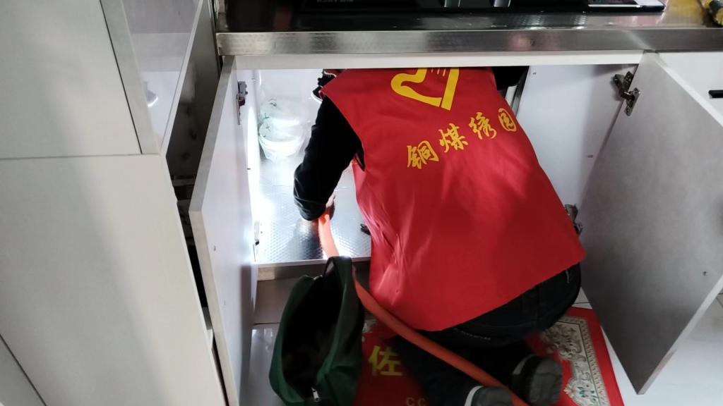 在銅煤家園,工作人員入戶進(jìn)行檢修,上門服務(wù)安民心。