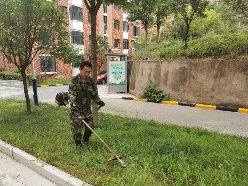 活動中,該中心工作人員準備各類除草工具穿梭在綠樹綠草之中,有的修剪樹枝,有的修剪草坪,有的清理雜草裝車,分工配合,互相協(xié)作,干得熱火朝天,小區(qū)居民看到后也積極加入其中。經(jīng)過一個上午的“奮戰(zhàn)”,路邊的雜草、落葉等都被清理干凈,小區(qū)的環(huán)境衛(wèi)生得到了明顯改善。
