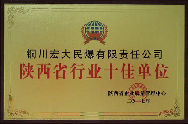 近日,從陜西省企業(yè)質(zhì)量管理中心傳來喜訊,銅川宏大民爆有限責(zé)任公司被授予 “陜西省行業(yè)十佳單位”榮譽(yù)稱號(hào)。據(jù)悉,這是該公司成立以來,獲評(píng)“陜西省AAA級(jí)信譽(yù)單位”之后又一次獲得的殊榮。