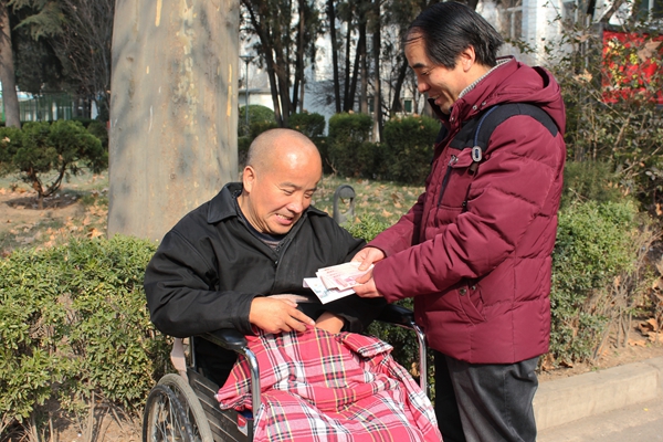來到在銅川礦務(wù)局中心醫(yī)院,在距離住院部不遠(yuǎn)處,劉孝文看到高位癱瘓、正坐在輪椅上曬太陽的職工呂紅斌,趕緊就和他打招呼,并很快走到其跟前與他噓寒問暖、拉起了家常,并送上了組織的關(guān)懷和溫暖。
