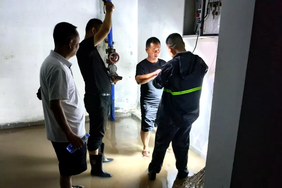 應(yīng)急隊伍迅速集結(jié),手持手電筒、鐵鍬、水泵等工具,冒雨穿梭在小區(qū)的每一個角落。他們首先重點檢查了低洼地帶、地下車庫入口及排水系統(tǒng),發(fā)現(xiàn)積水立即組織排水,確保水流順暢,同時,利用水泵等設(shè)備加速排水進程,減少積水對居民生活的影響。