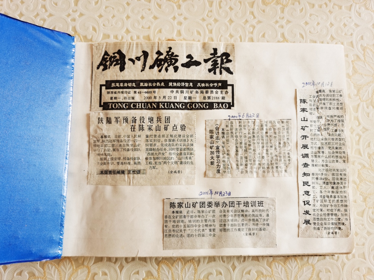 在我的書柜里,珍藏著一個自制的藍色塑料封皮報刊剪貼本,剪貼本的第一頁,標記著第一次在礦工報上發(fā)表作品的日期——2000年5月22日,也是從那時起,我與文字結緣,與《銅川礦工報》結緣。