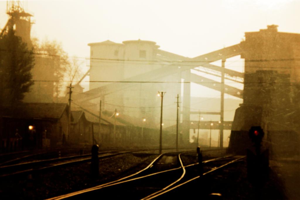 我依舊站著,沒有睜開眼睛,感覺身體開始變輕,周圍的一切都慢了下來,慢到逐漸停止,并從停止的那一刻開始倒流,越來越快、像科幻片般,天空變得昏暗,眼前的景象介于清晰和模糊之間,太陽朝著相反的方向加速運(yùn)動一圈又一圈,身旁閃過無數(shù)人影,有些甚至穿過我的身體,雖然看不清,但肯定他們是曾經(jīng)生活工作于此的人,選煤樓的藍(lán)色開始退去,變回原本的黑色,聽見了蒸汽機(jī)車的轟鳴,車頭冒出的白煙時不時會將建筑物吞沒,小礦車在軌道上相互碰撞,周圍擠滿了礦工,身穿黑色礦服,每個人衣服上都有被硫酸礦燈腐蝕的漏洞,大小總不合適的礦靴在地面摩擦,濺起陣陣塵土,他們在說著什么?有河南話、有陜西話和陜北話,雖然看不清臉,但我知道他們臉上掛滿了笑容。