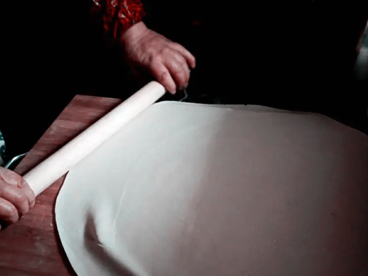 母親把揉好的面搟成大面餅,然后用搟面杖卷起面餅的一邊,兩只手扶住面杖上的面卷,前后不停地來回推拉,反復(fù)重復(fù)這個(gè)動(dòng)作,用力均勻,防止面皮間粘連,母親還要不斷地?cái)傞_,不時(shí)均勻地撒上一小撮玉米面,增加口感和韌勁,再重新?lián)Q方向或角度卷起再搟。如此地重復(fù)這個(gè)動(dòng)作,母親身體前傾后仰,來回踱著步子,壓得炕沿上的面板吱扭吱扭地響個(gè)不停,我想把這塊面團(tuán)搟完得需要消耗母親多少氣力和心血啊!